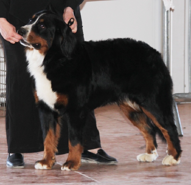 dcc ; très bonne construction d'ensemble ,manque un peu de substance ,ligne de dessus correcte très bonne encolure , très bonne tête ,oeil un peu ouvert de bonne couleur ;bonne forme de crane et oreille attaché un peu bas ; très bon stop ;excellente pigmentation des lèvre ; excellente avant main ; très bonne poitrine ; angulations arrière correcte avec ergots ; queue planter un peu bas ; manque de fourrure ; excellent marquage ; allures correcte ; excellent carractére .