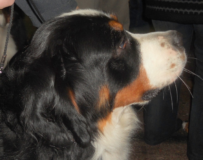 dcc ; très bonne construction d'ensemble ; ligne d dessus correcte ; très bonne encolure ; très bonne tête , oeil de bonne couleur mais un peu trop ouvert ; excellent stop et largeur de crane ; trés bonne attache d'oreille ; pigmentation un peu juste des lèvres ; très bonne épaule et avant main excellente poitrine pour l'âge ; arrière main avec ergots un peu droite ; exellente attache de fouet ; allure de profil correcte avec une légère boiterie ; exellente fourrure ,marquage et carractére ; a revoir